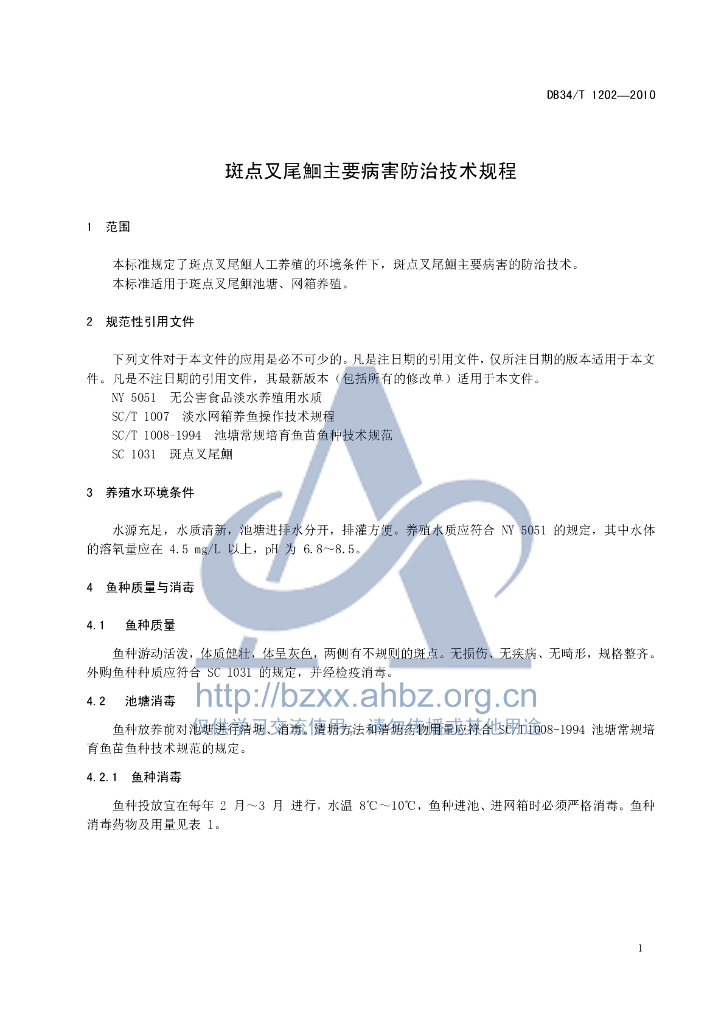 DB34/T 1202-2010 斑点叉尾鮰主要病害防治技术规程