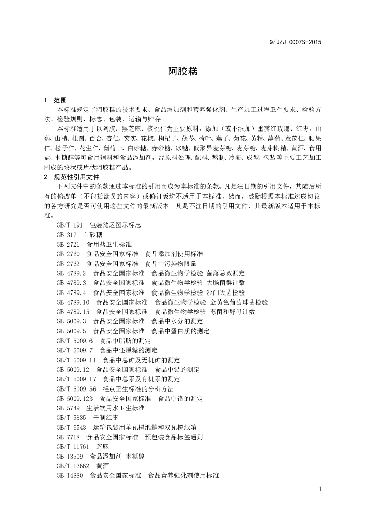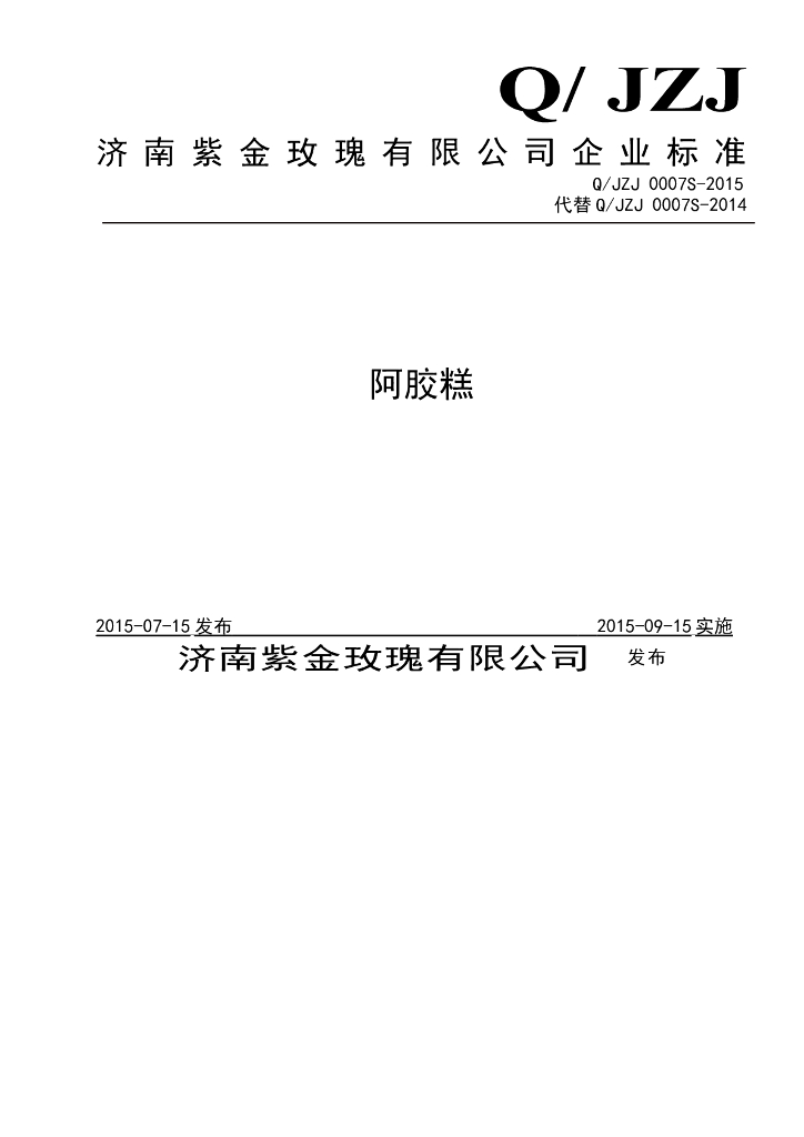 Q/JZJ 0007S-2015 济南紫金玫瑰有限公司 阿胶糕