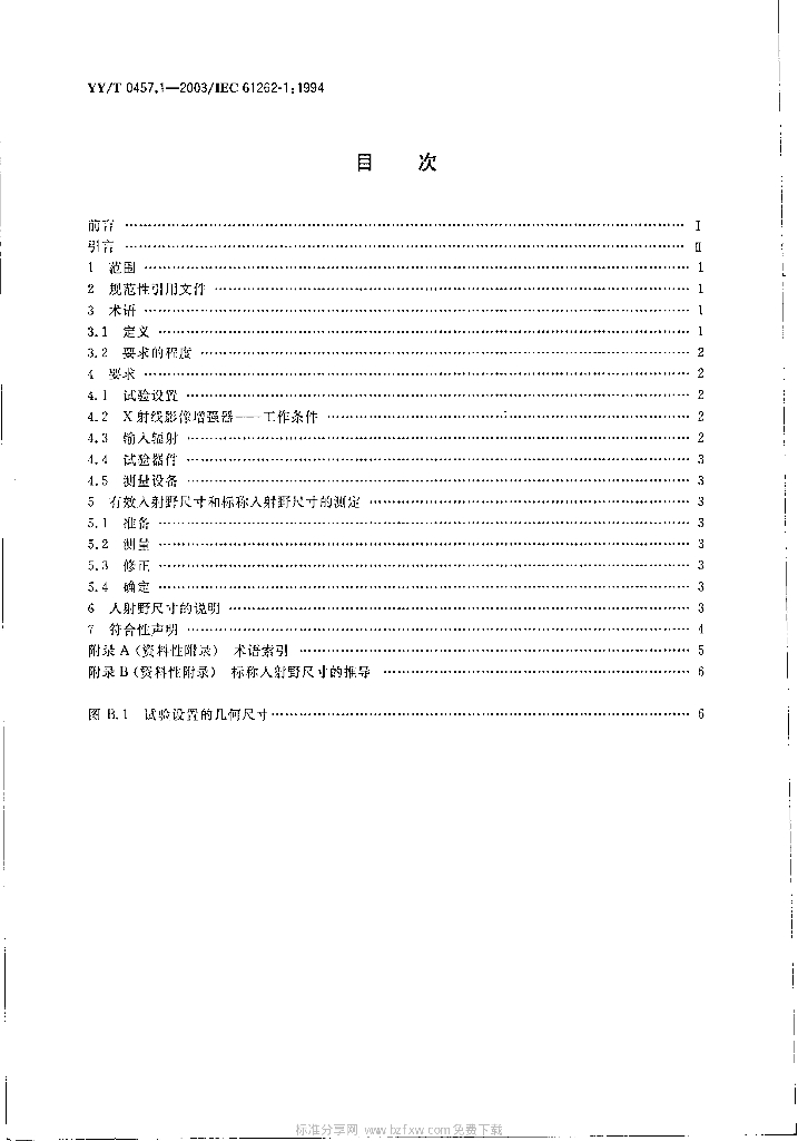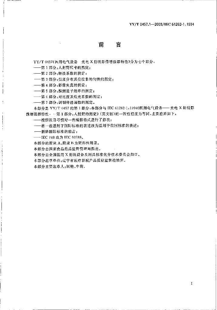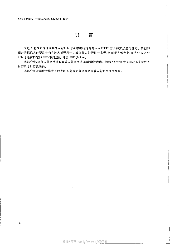 YY/T 0457.1-2003/IEC 61262-1:1994 医用电气设备光电X射线影像增强器特性 第1部分:入射野尺寸的测定