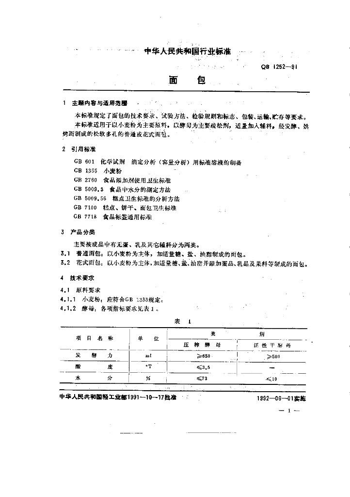 QB/T 1252-1991 面包