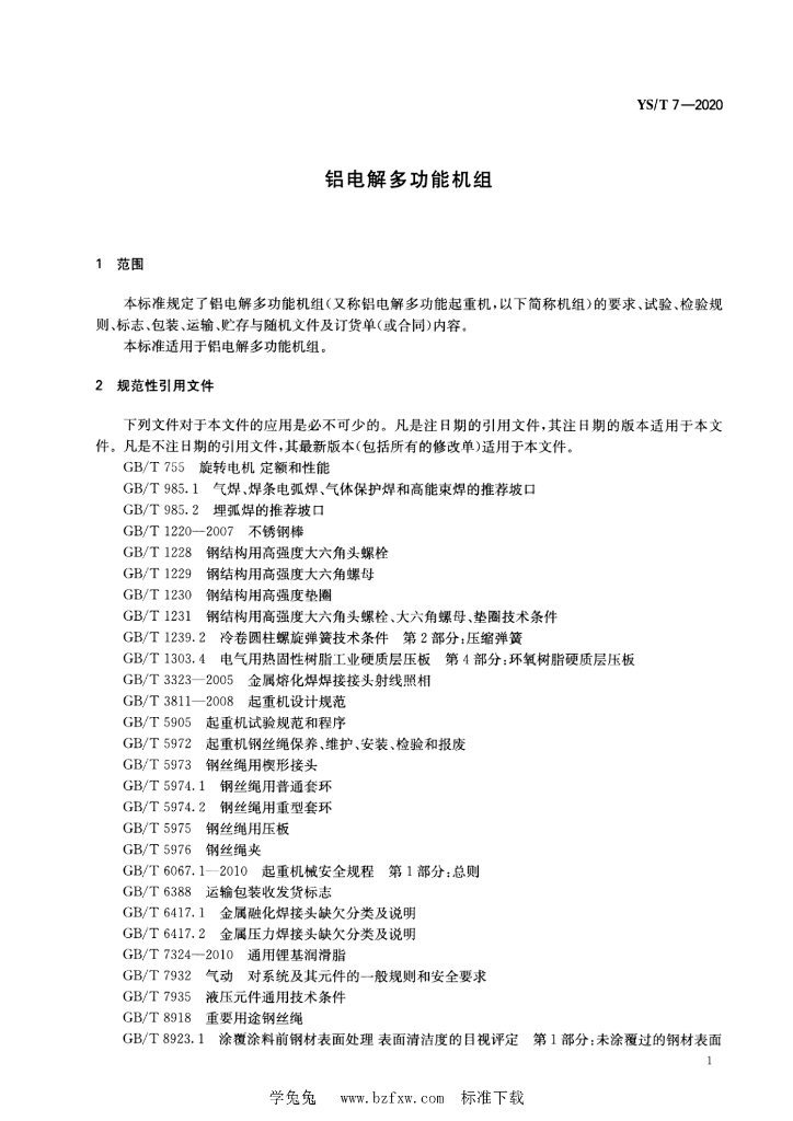 YS/T 7-2020 铝电解多功能机组