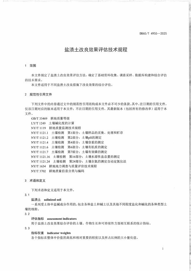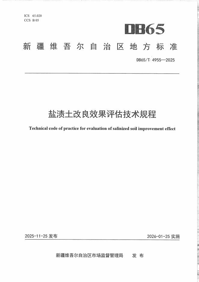 DB65/T 4955-2025 盐渍土改良效果评估技术规程
