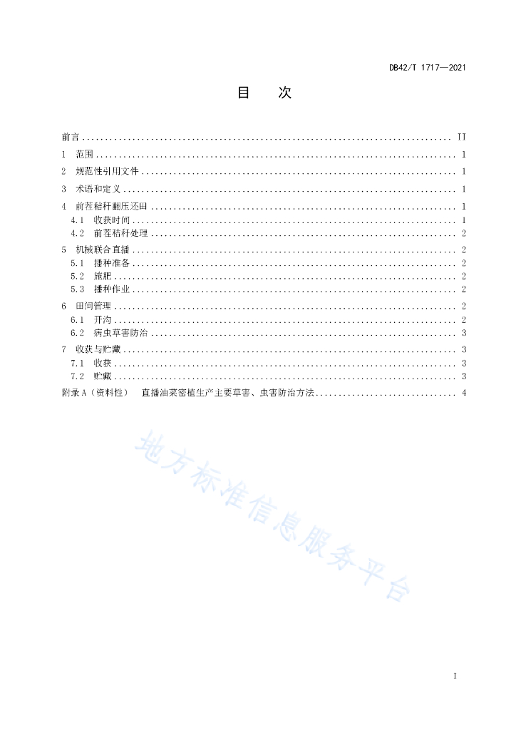 DB42/T 1717-2021 直播油菜密植生产技术规程