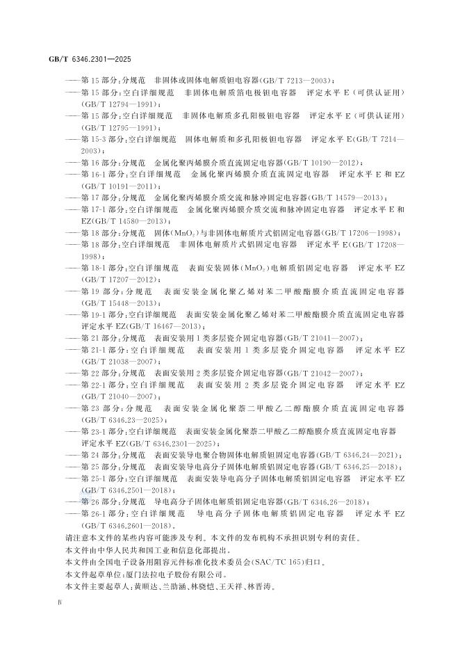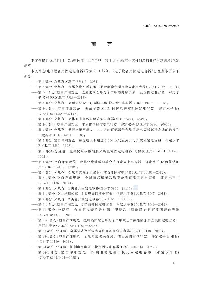 GB/T 6346.2301-2025 电子设备用固定电容器 第23-1部分:空白详细规范 表面安装金属化聚萘二甲酸乙二醇酯膜介质直流固定电容器 评定水平EZ
