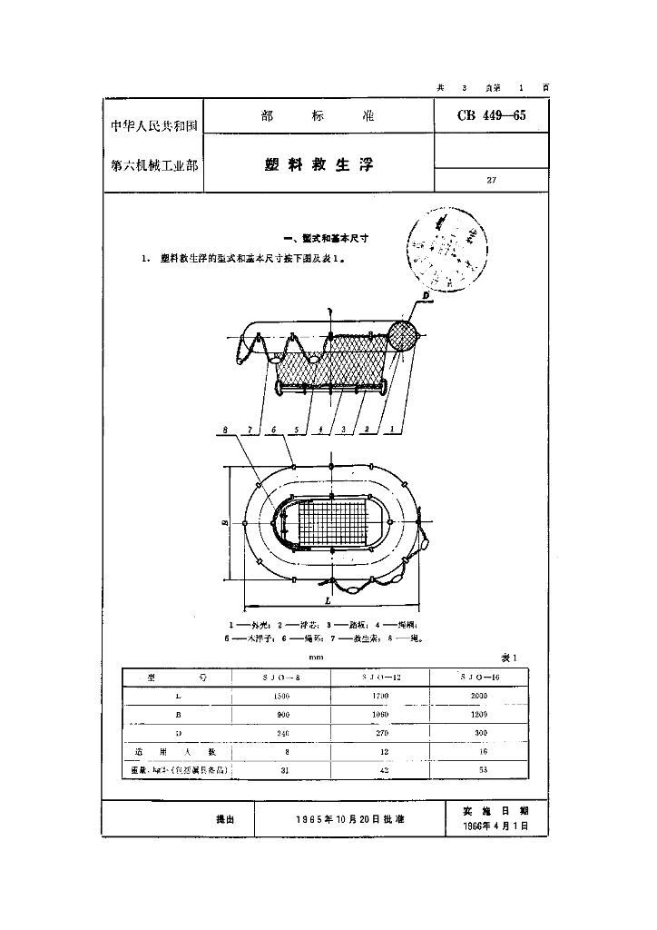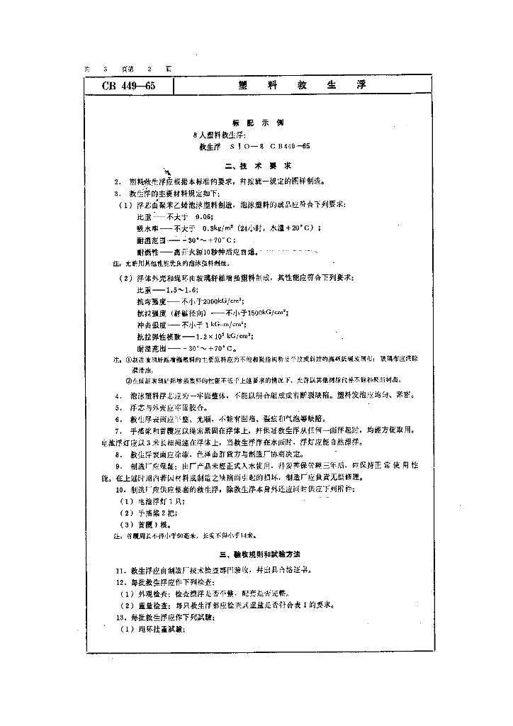 CB 449-1965 塑料救生浮