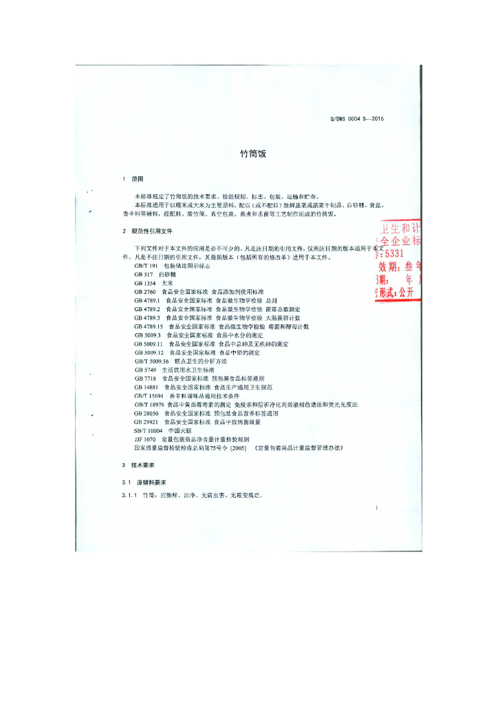 Q/DWS 0004S-2016 瑞丽傣旺食品有限公司 竹筒饭