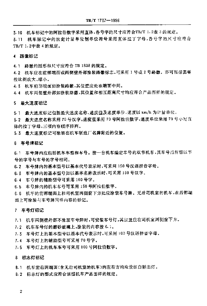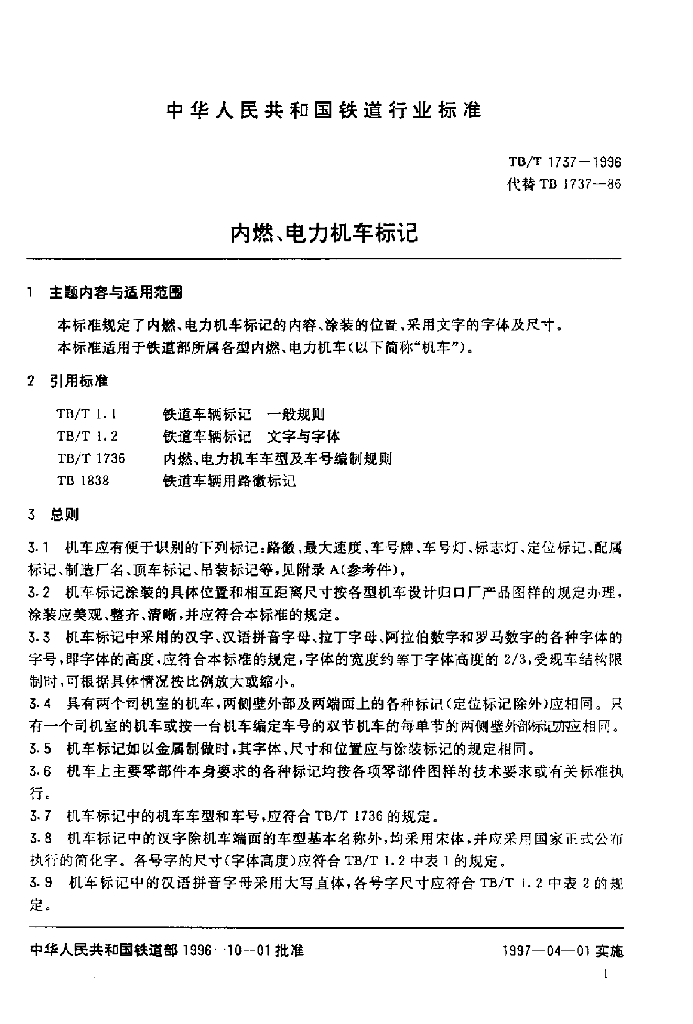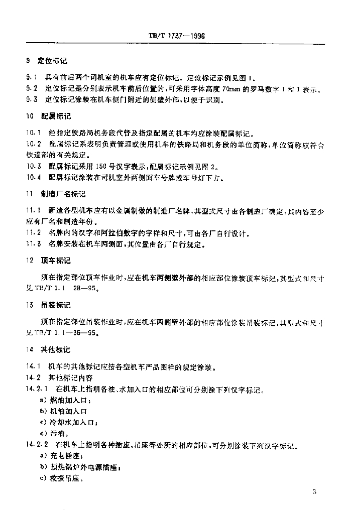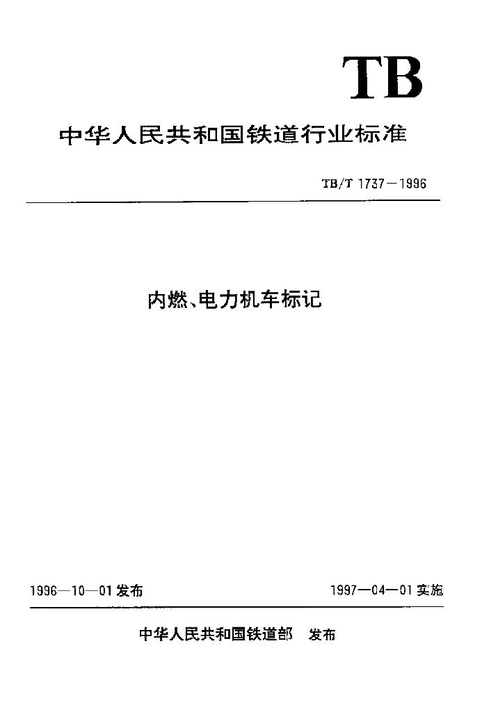 TB/T 1737-1996 内燃、电力机车标记