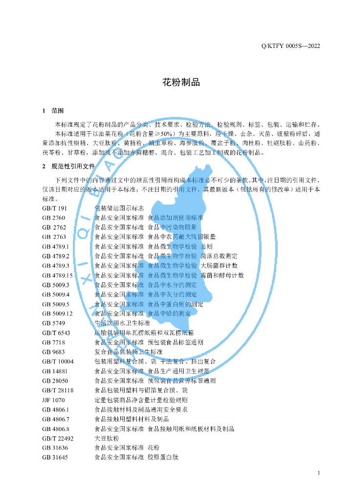 Q/KTFY 0005S-2022 花粉制品