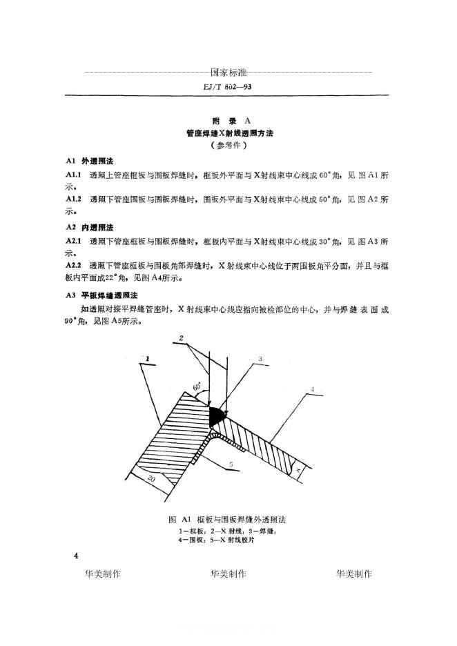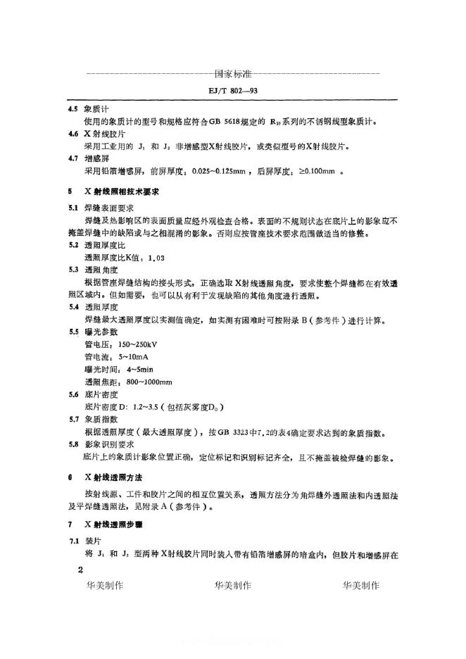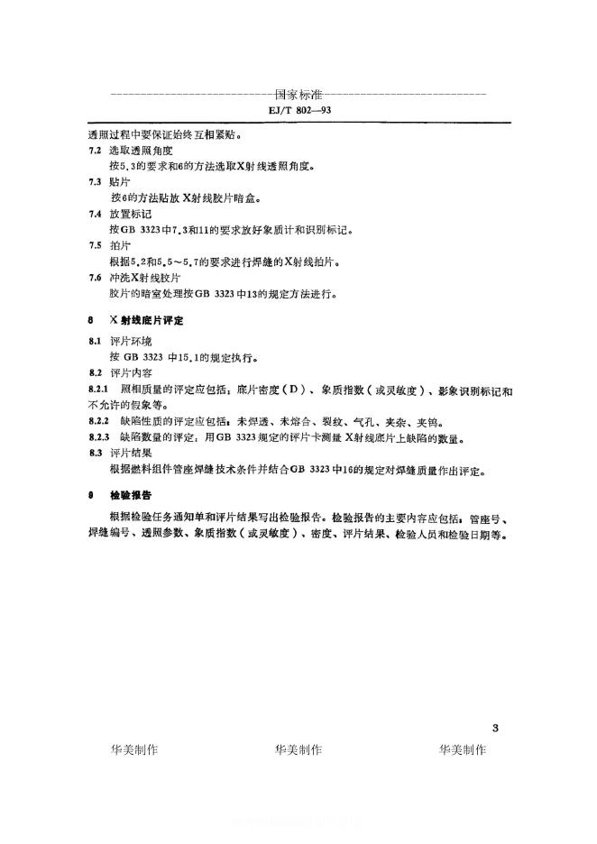 EJ/T 802-1993 压水堆核电厂燃料组件管座焊缝 X射线照相检验方法