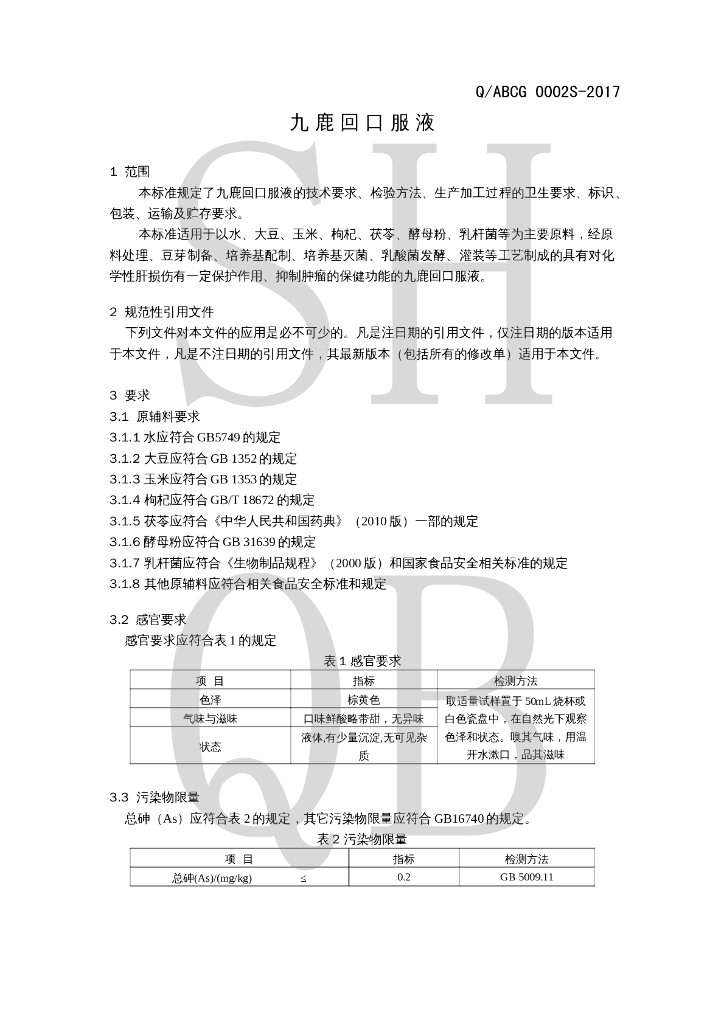 Q/ABCG 0002S-2017 九鹿回口服液