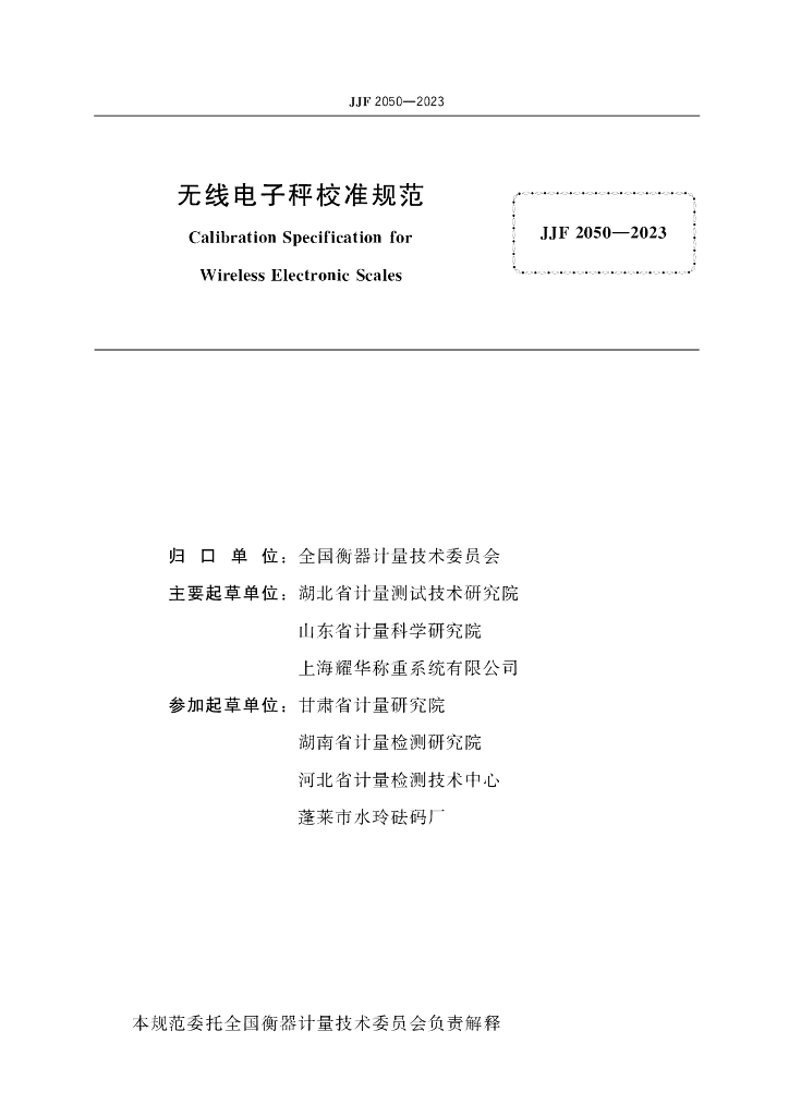 湖北省计量测试技术研究院、山东省计量科学研究院、上海耀华称重系统有限公司、甘肃省计量研究院、湖南省计量检测研究院、河北省计量检测技术中心、蓬莱市水玲砝码厂