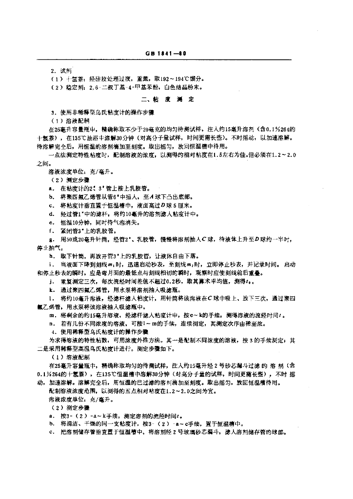 GB/T 1841-1980 聚烯烃树脂稀溶液粘度试验方法