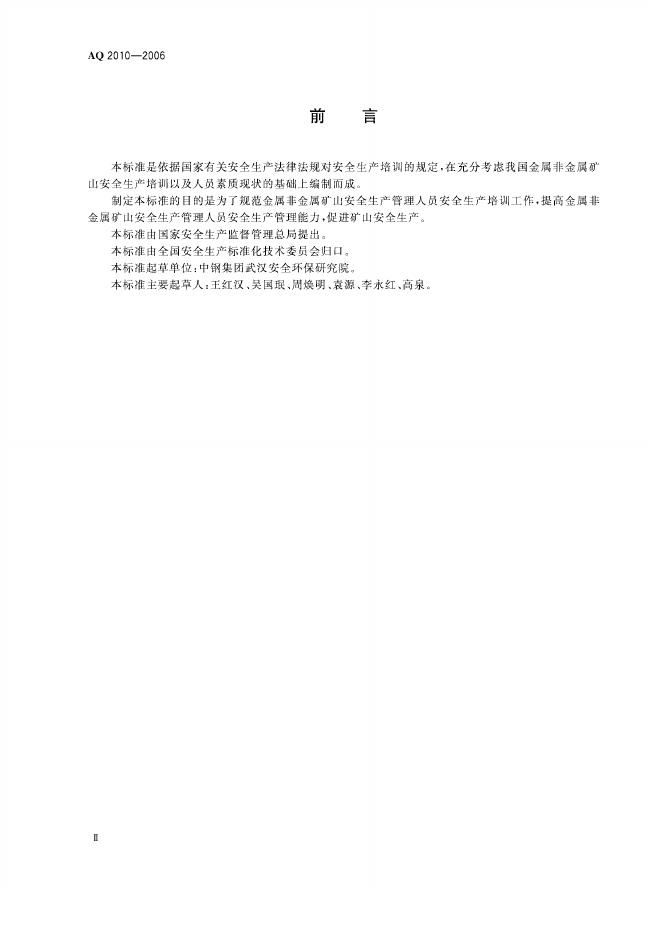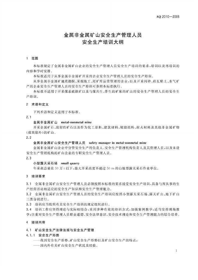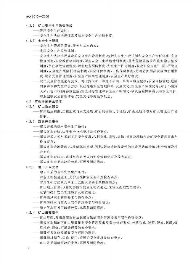 AQ/T 2010-2006 金属非金属矿山安全生产管理人员安全生产培训大纲