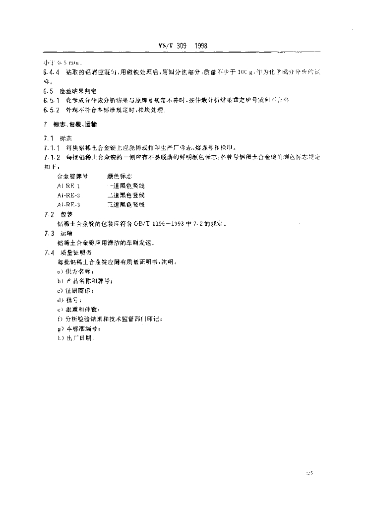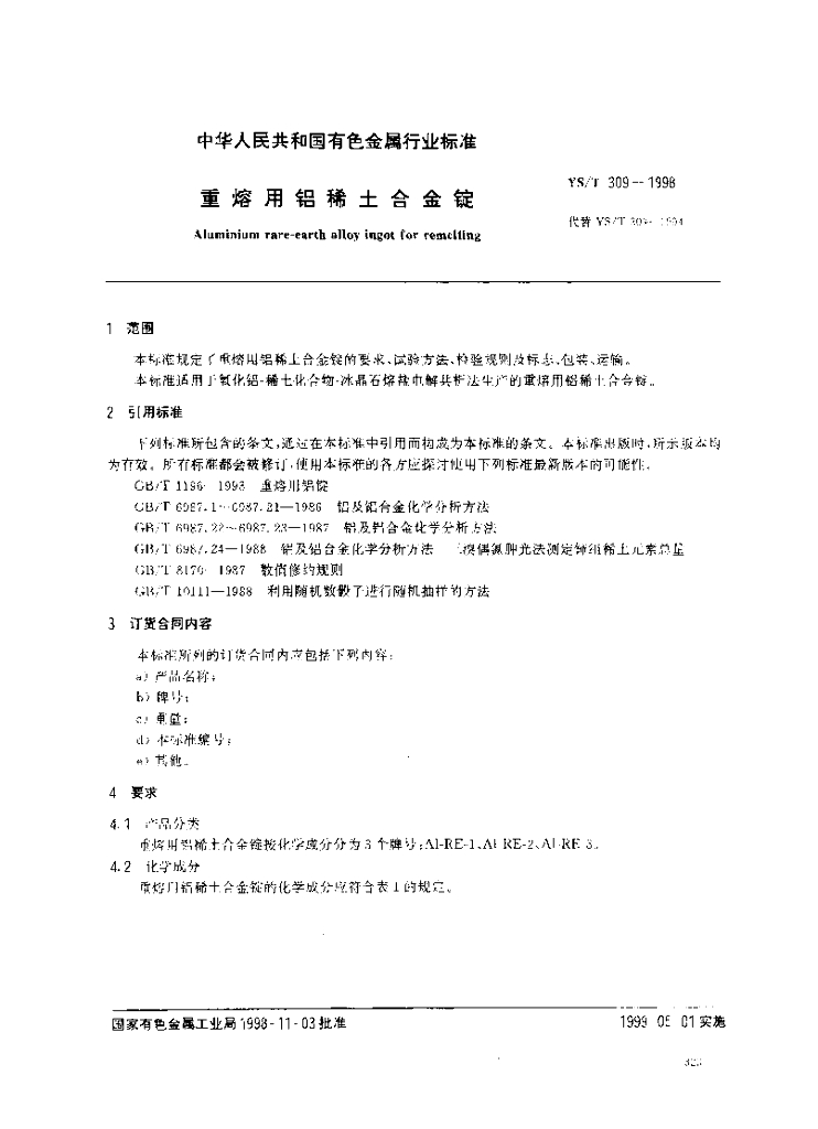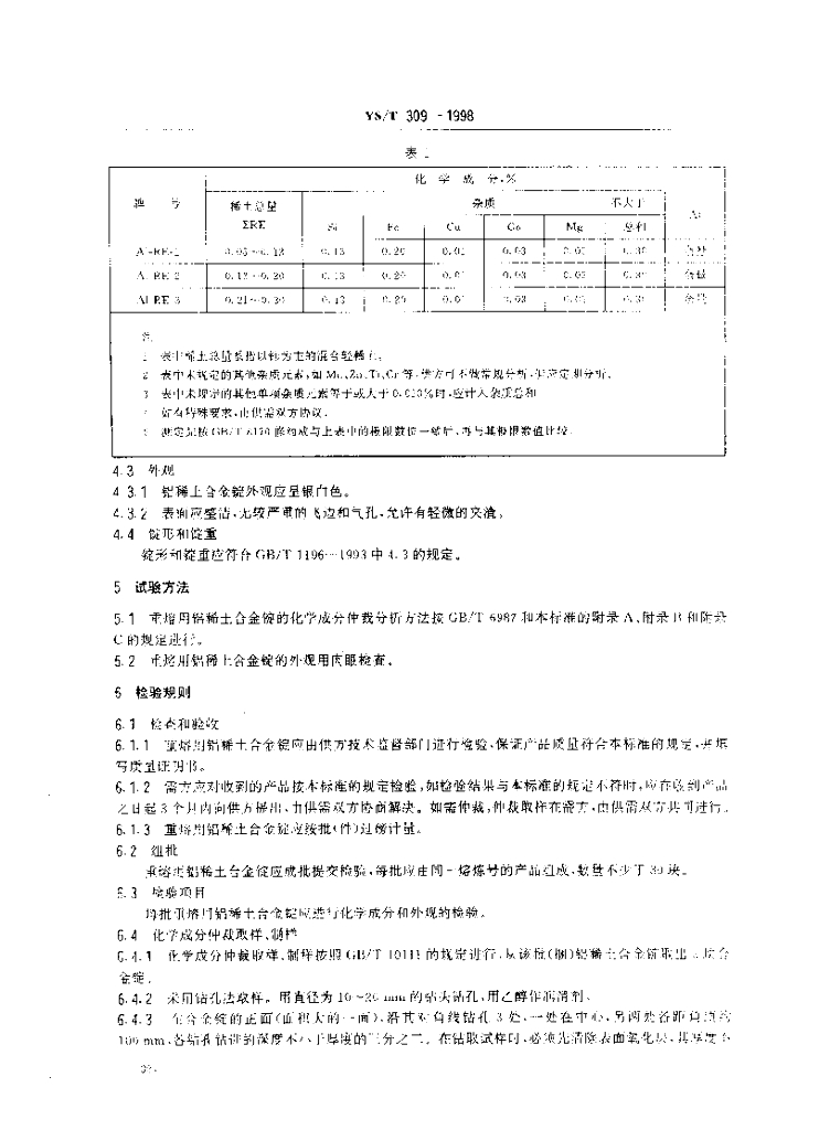 YS/T 309-1998 重熔用铝稀土合金锭