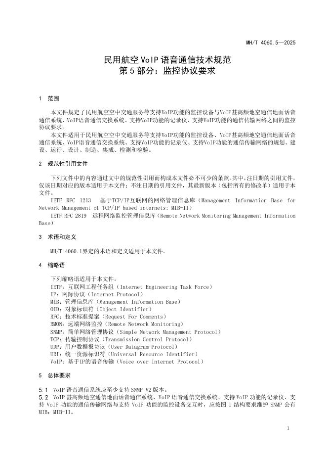 MH/T 4060.5-2025 民用航空VoIP语音通信技术规范 第5部分:监控协议要求