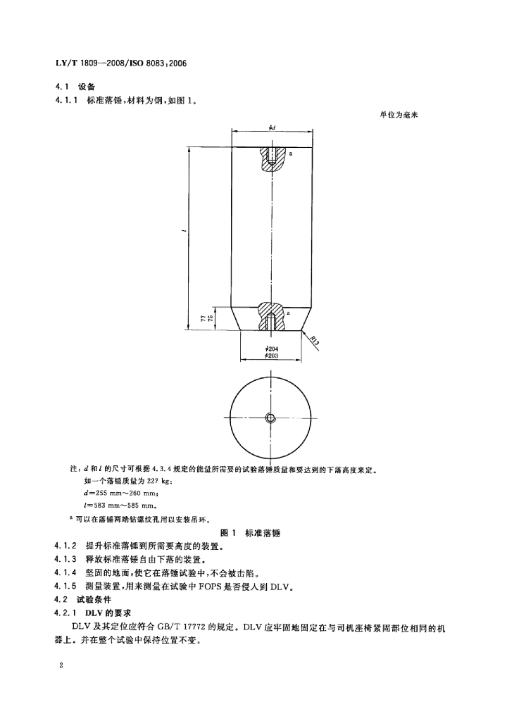 LY/T 1809-2008 园林机械落物保护结构(FOPS)实验室试验和性能要求