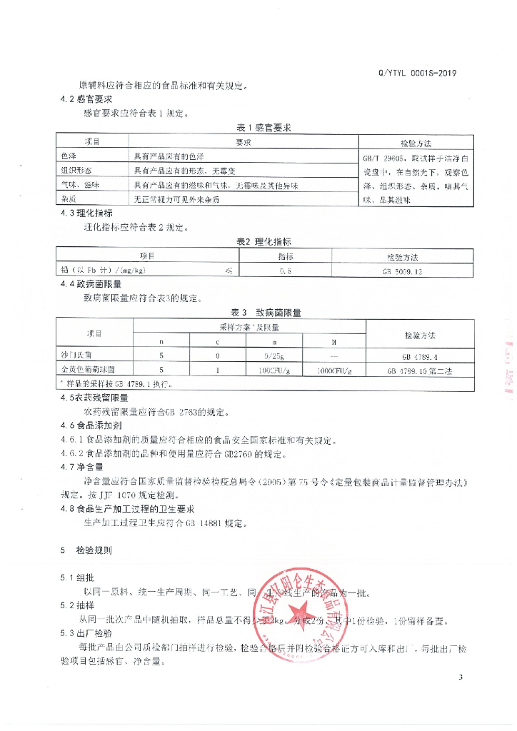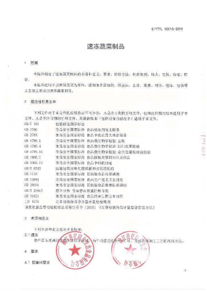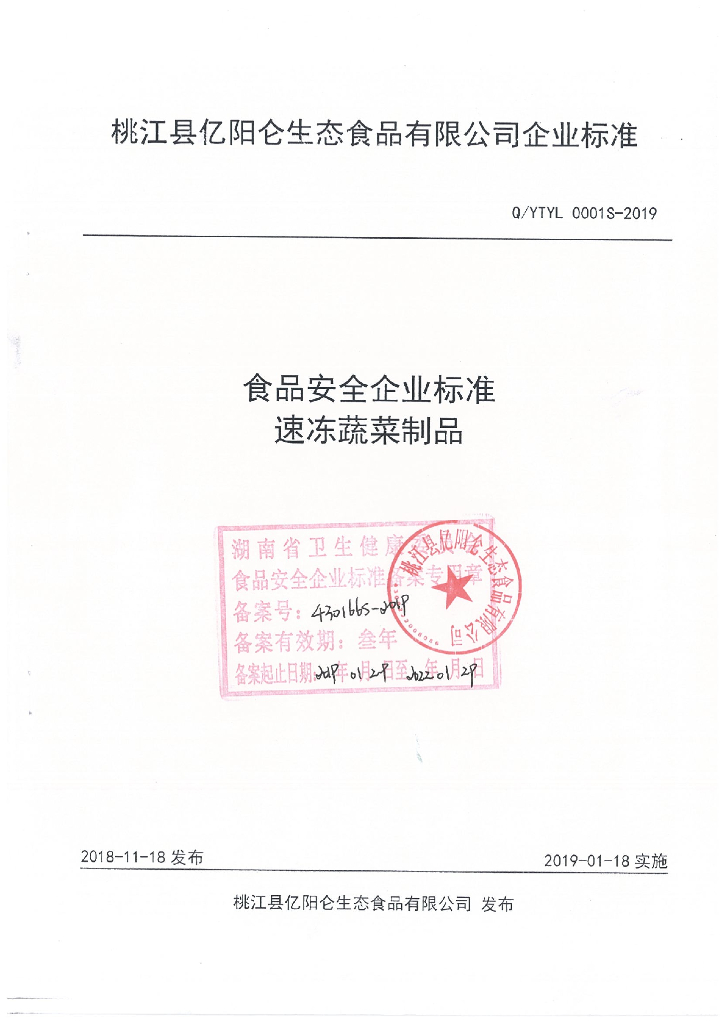 Q/YTYL 0001S-2019 速冻蔬菜制品