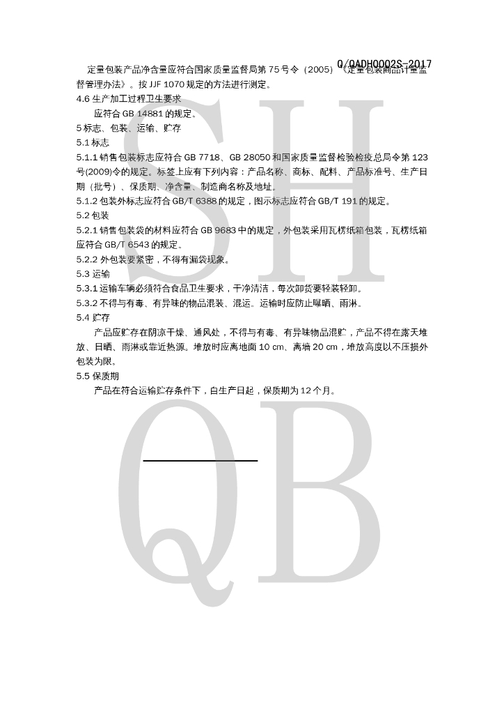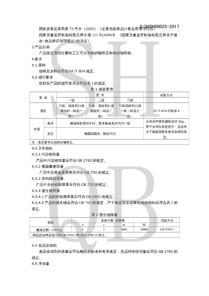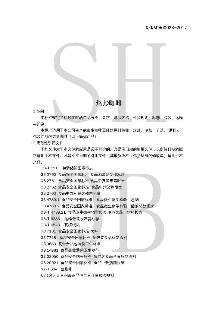 Q/QADH 0002S-2017 焙炒咖啡