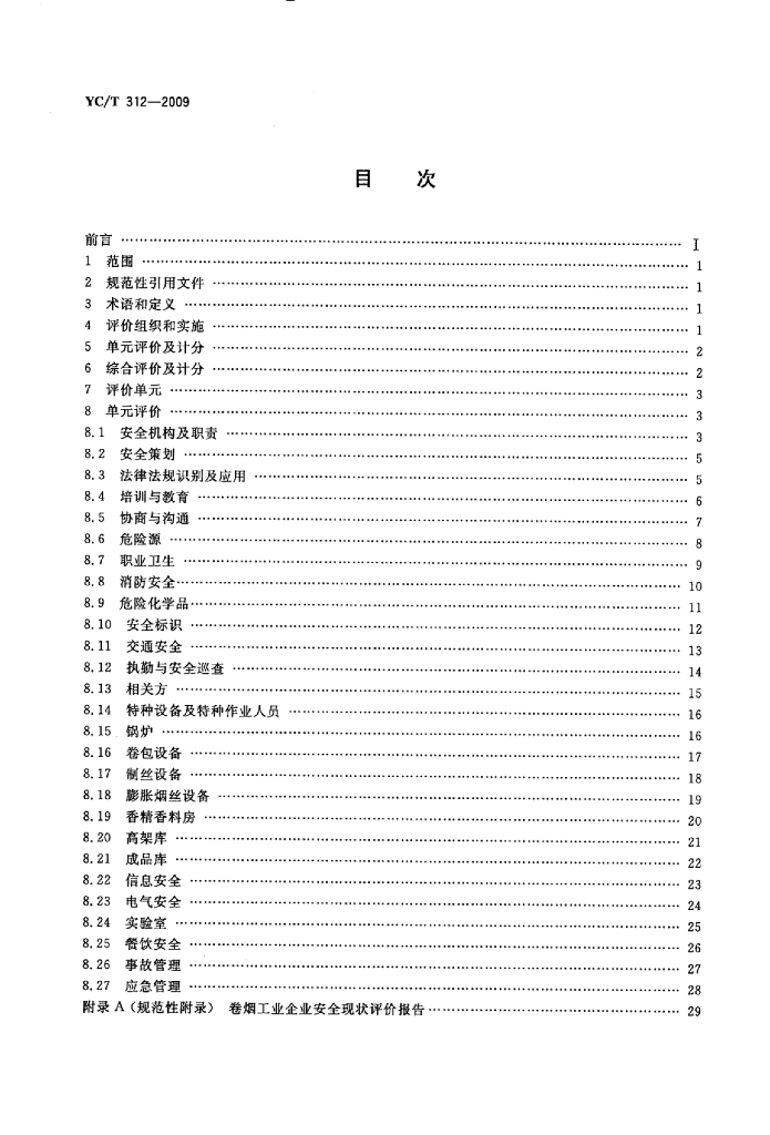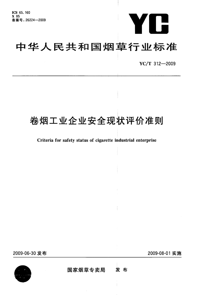 YC/T 312-2009 卷烟工业企业安全现状评价准则