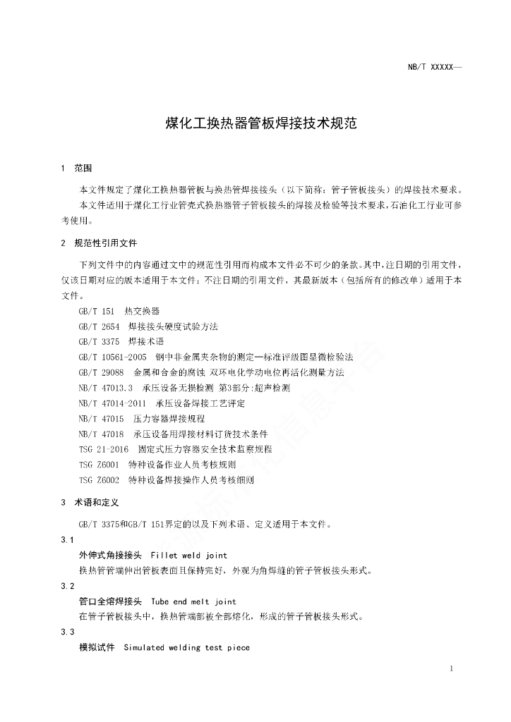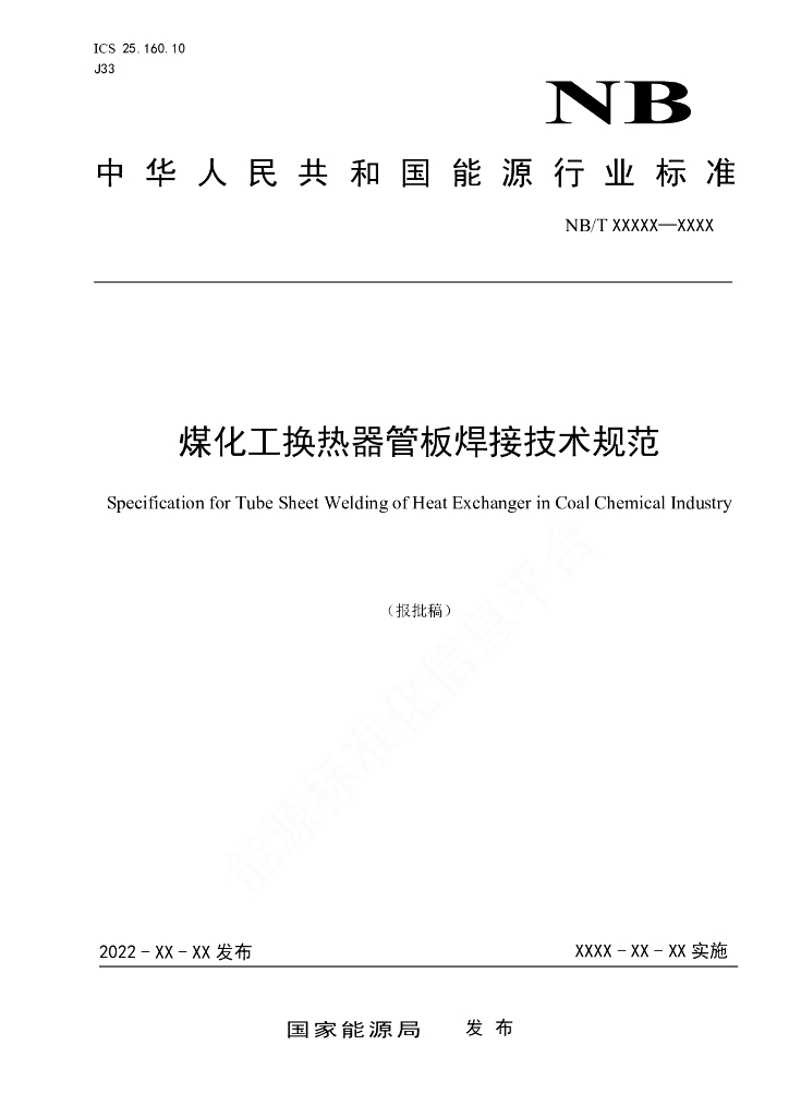 NB/T 11033-2022 煤化工换热器管板焊接技术规范