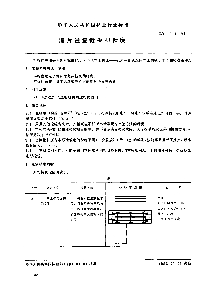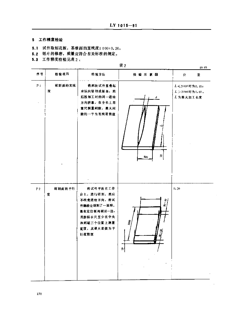 LY 1015-1991 锯片往复裁板机精度
