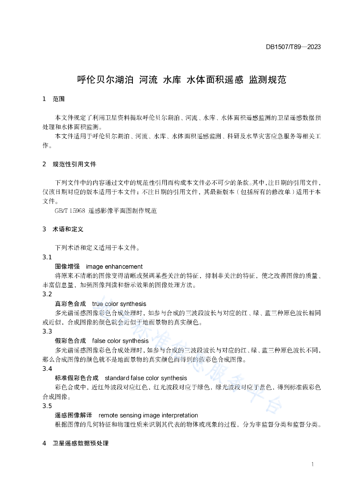DB1507/T 89-2023 《呼伦贝尔湖泊河流水库水体面积遥感监测规范》
