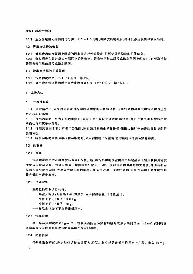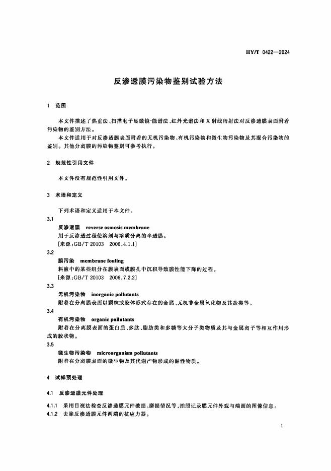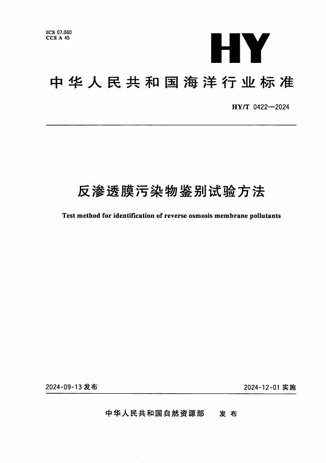 HY/T 0422-2024 反渗透膜污染物鉴别试验方法