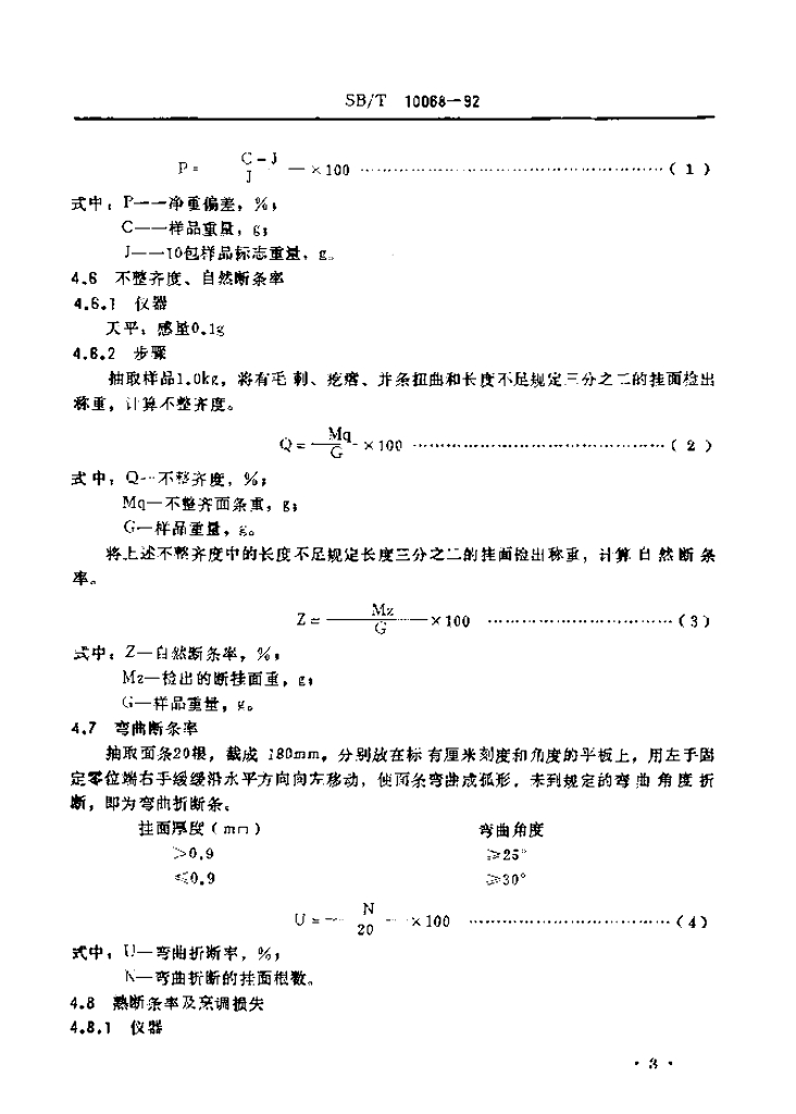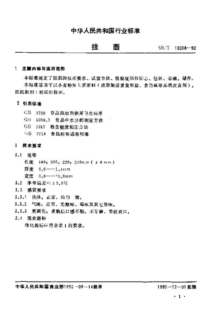 SB/T 10068-1992 挂面