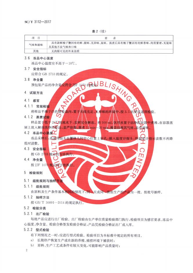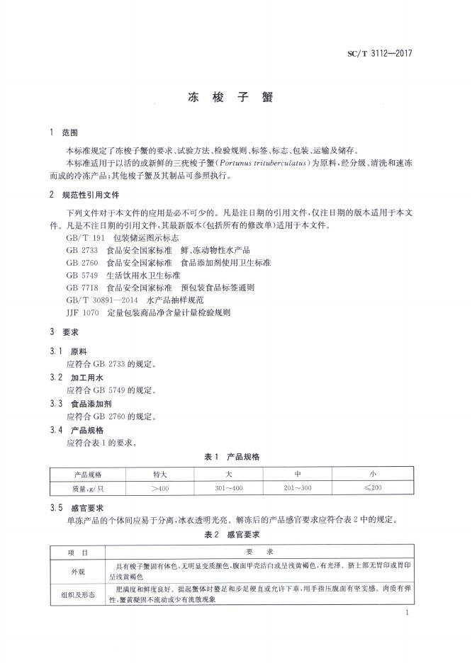 SC/T 3112-2017 冻梭子蟹
