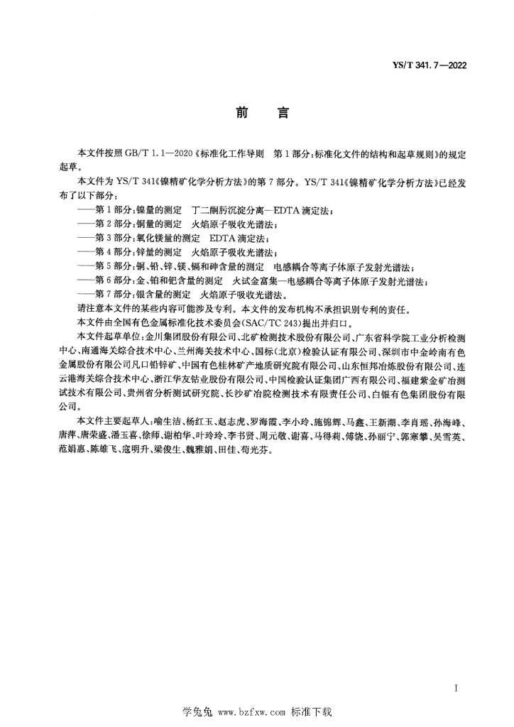 金川集团股份有限公司、北矿检测技术股份有限公司、广东省科学院工业分析检测中心、南通海关综合技术中心、兰州海关技术中心、国标(北京)检验认证有限公司、深圳市中金岭南有色金属股份有限公司凡口铅锌矿、中国有色桂林矿产地质研究院有限公司、山东恒邦冶炼股份有限公司、连云港海关综合技术中心、浙江华友钴业股份有限公司、中国检验认证集团广西有限公司、福建紫金矿冶测试技术有限公司、贵州省分析测试研究院、长沙矿冶院检测技术有限责任公司、白银有色集团股份有限公司