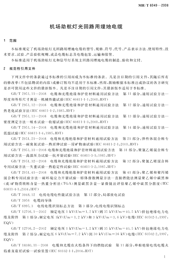 MH/T 6049-2008 机场助航灯光回路用埋地电缆