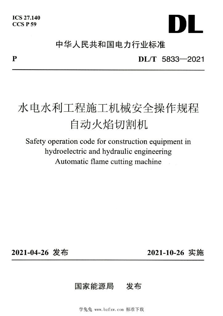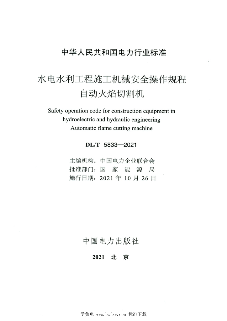 DL/T 5833-2021 水电水利工程施工机械安全操作规程自动火焰切割机