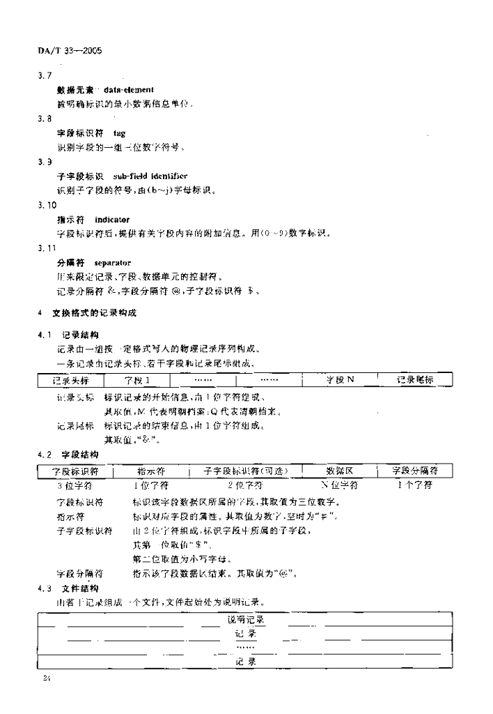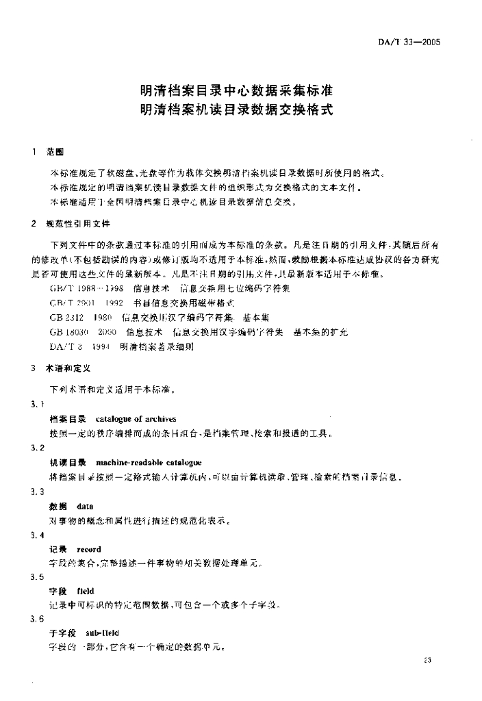 DA/T 33-2005 明清档案目录中心数据采集标准明清档案机读目录数据交换格式