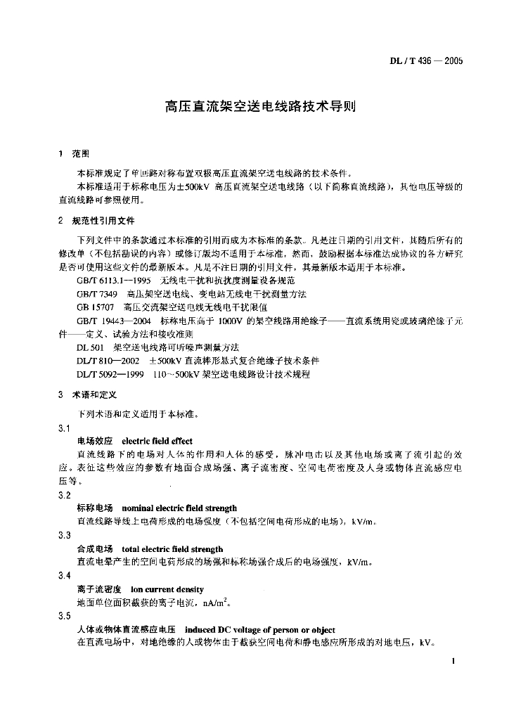 DL/T 436-2005 高压直流架空送电线路技术导则