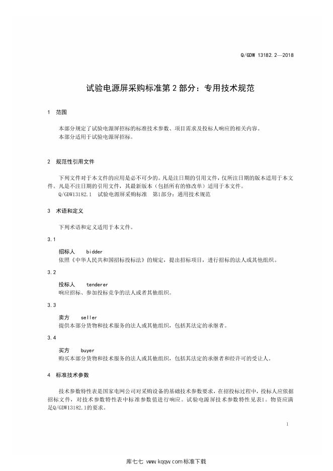 Q/GDW 13182.2-2018 试验电源屏采购标准 第2部分:专用技术规范