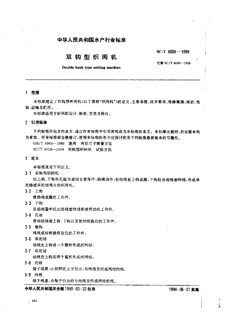 SC/T 6008-1999 双钩型织网机