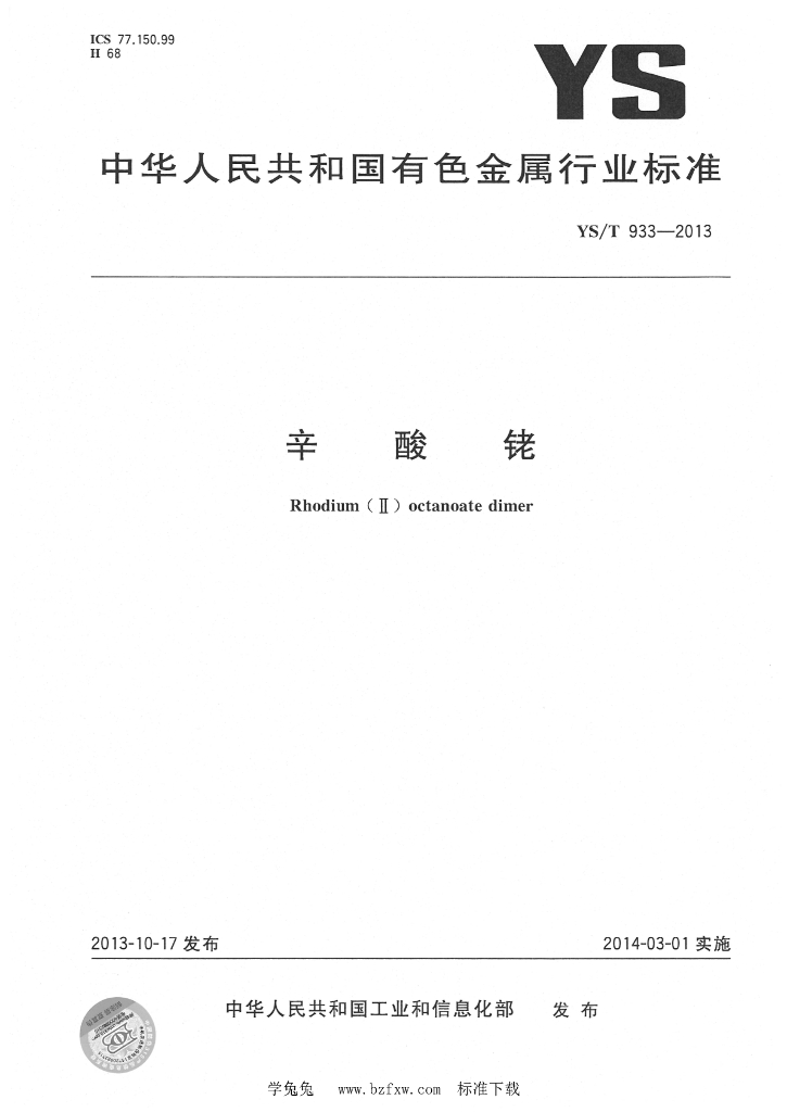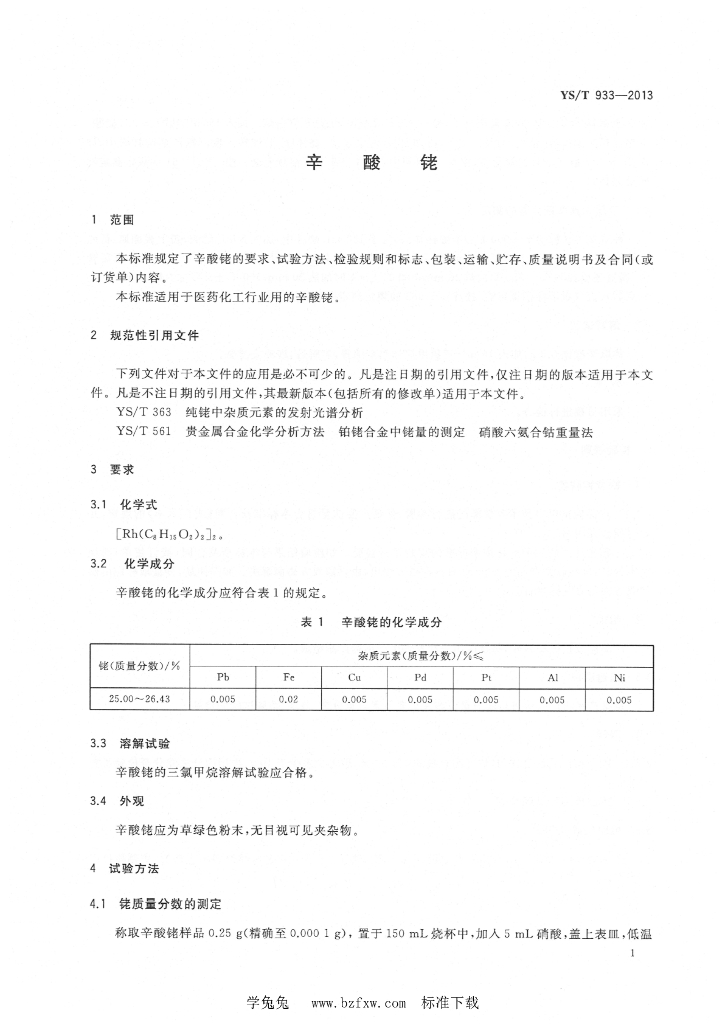 YS/T 933-2013 辛酸铑