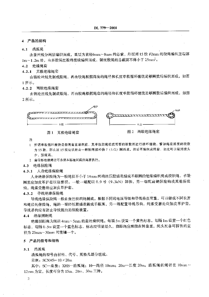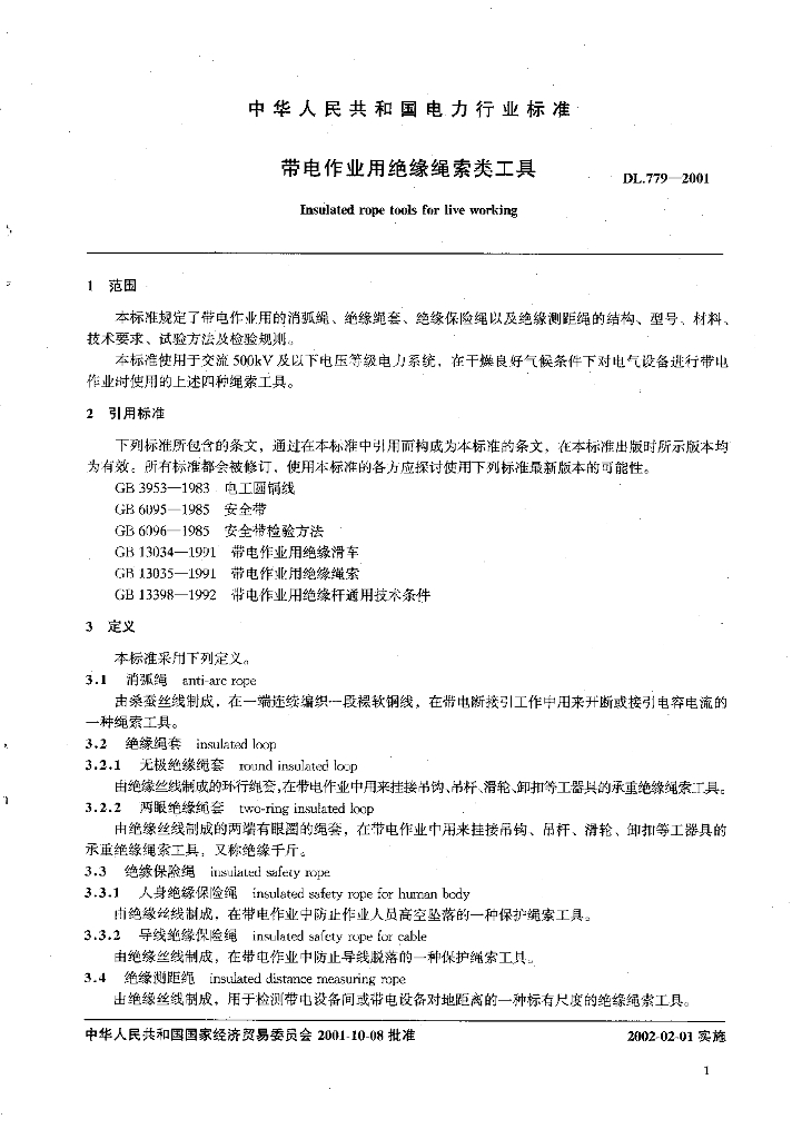 DL 779-2001 带电作业用绝缘绳索类工具