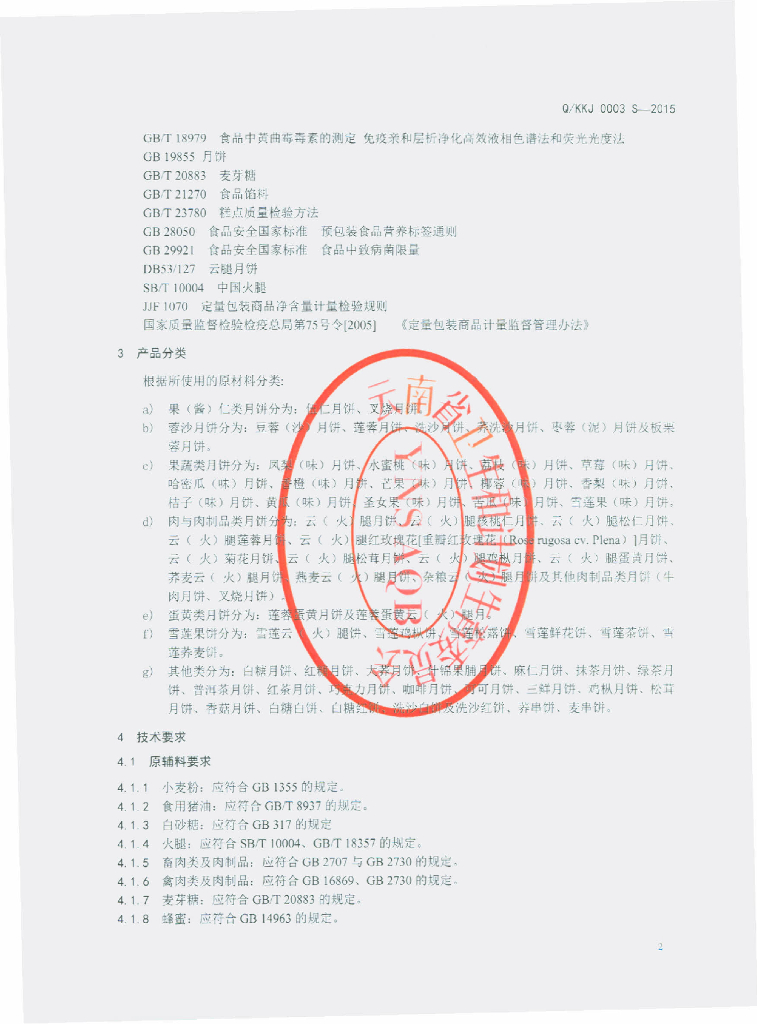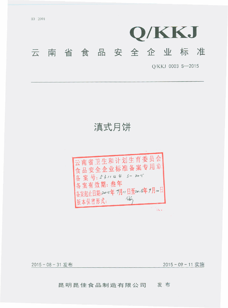 Q/KKJ 0003S-2015 昆明昆佳食品制造有限公司 滇式月饼