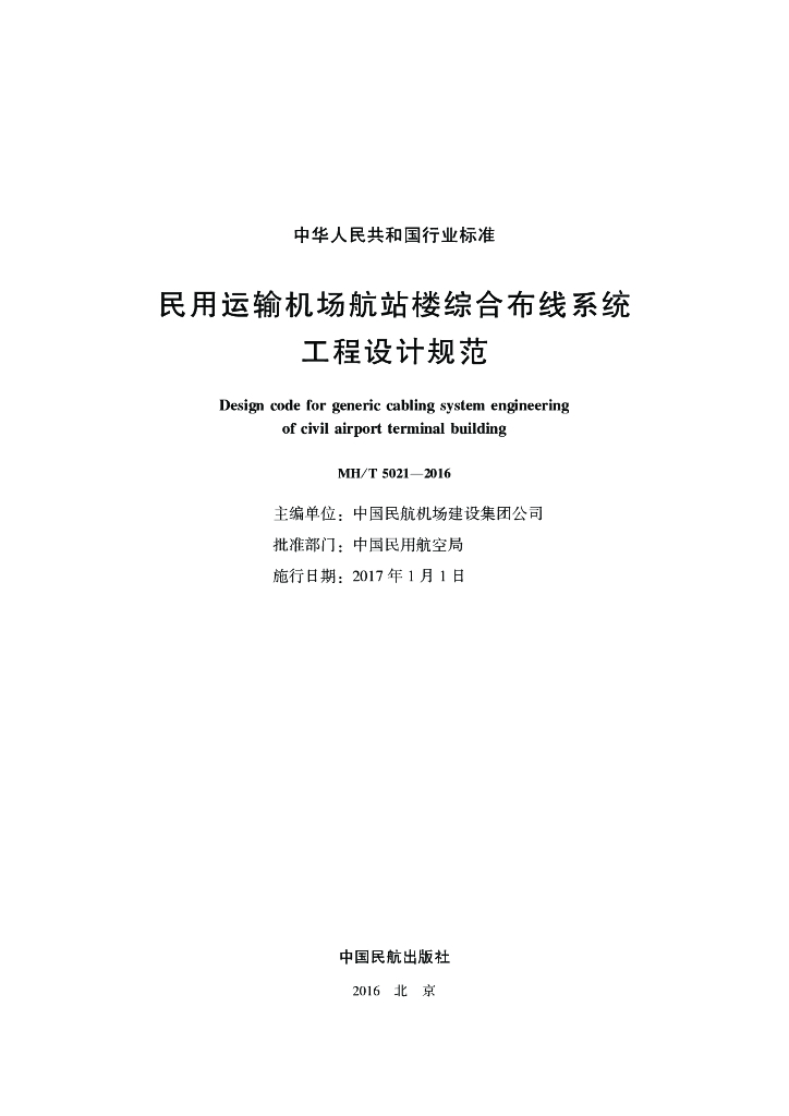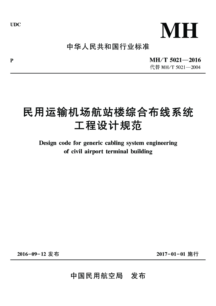 MH/T 5021-2016 民用运输机场航站楼综合布线系统工程设计规范