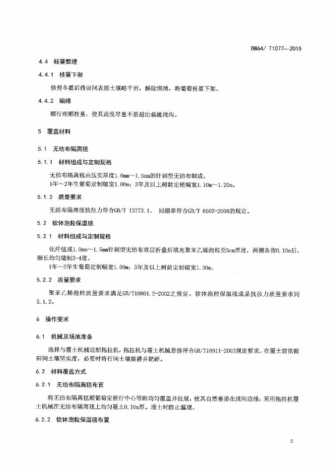 DB64/T 1077-2015 葡萄材料覆盖防寒越冬操作技术规程