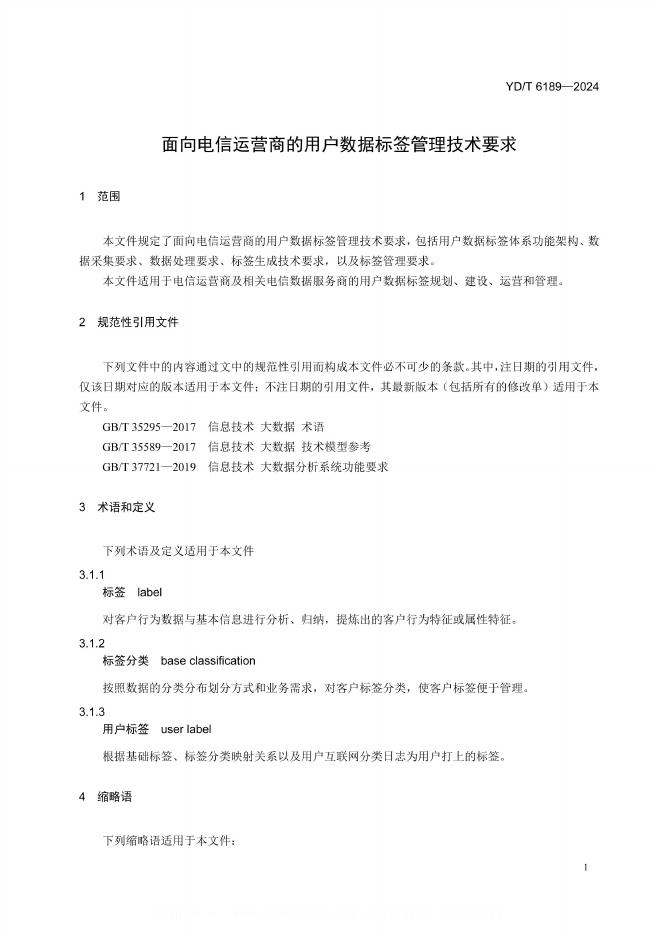 YD/T 6189-2024 面向电信运营商的用户数据标签管理技术要求