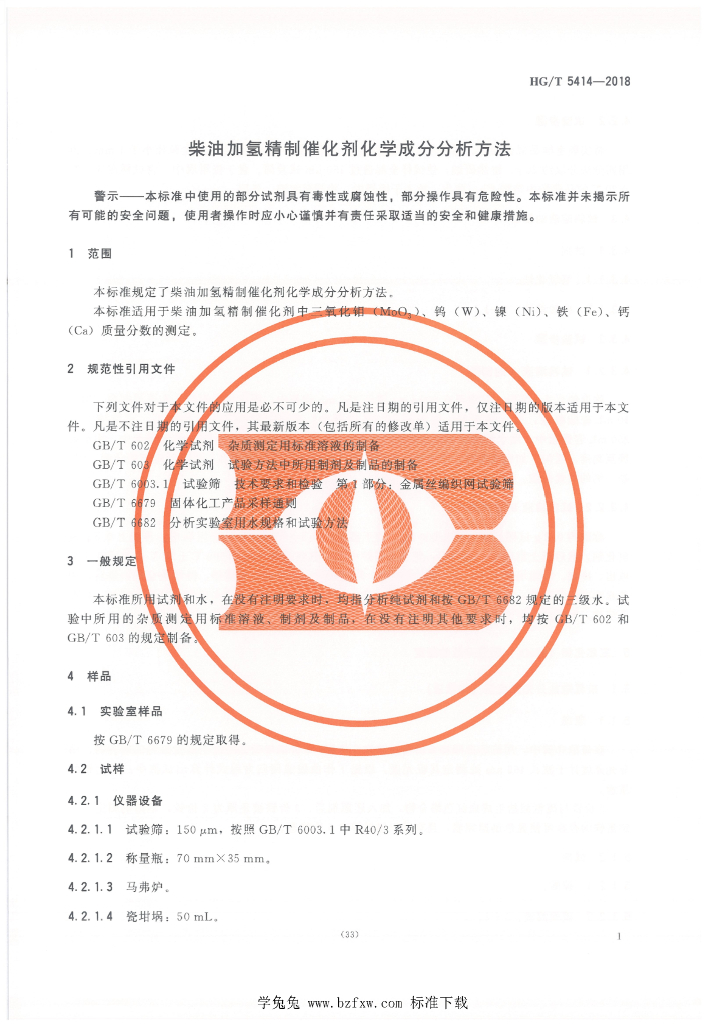 HG/T 5414-2018 柴油加氢精制催化剂化学成分分析方法