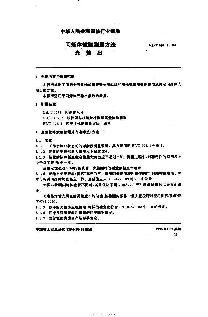 EJ/T 903.2-1994 闪烁体性能测量方法 光输出