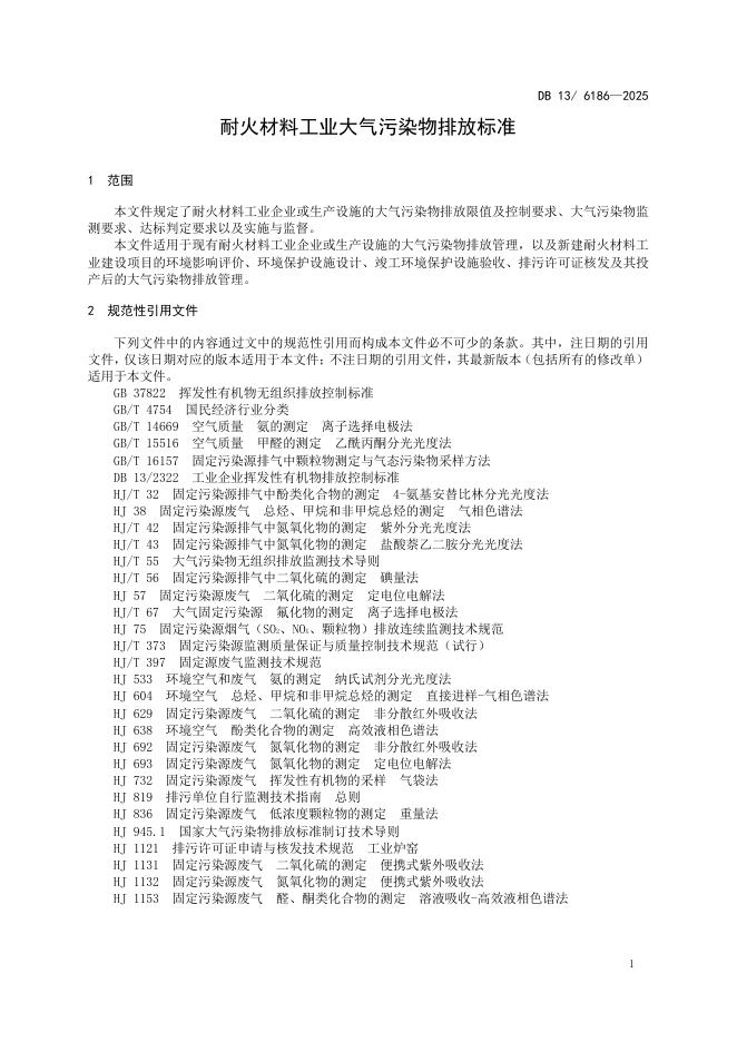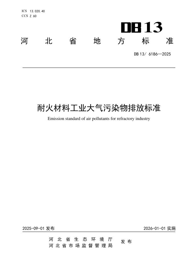 DB13/ 6186-2025 耐火材料工业大气污染物排放标准