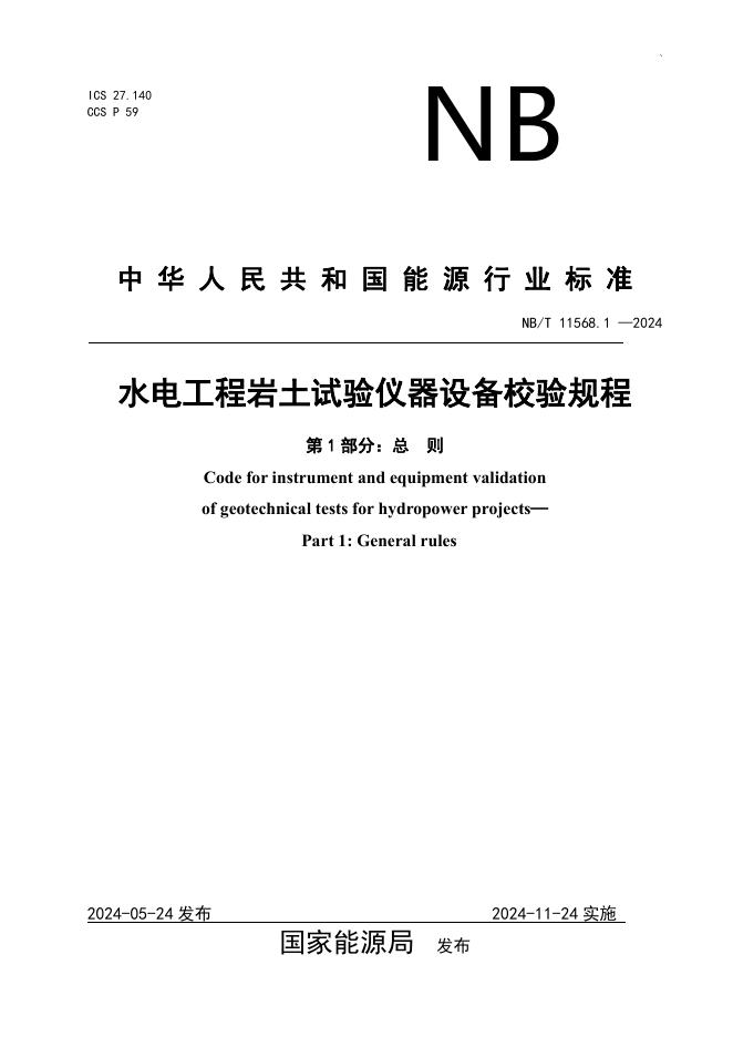 NB/T 11568.1-2024 水电工程岩土试验仪器设备校验规程 第1部分:总则