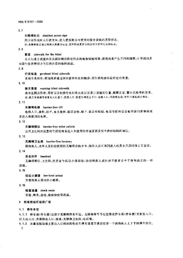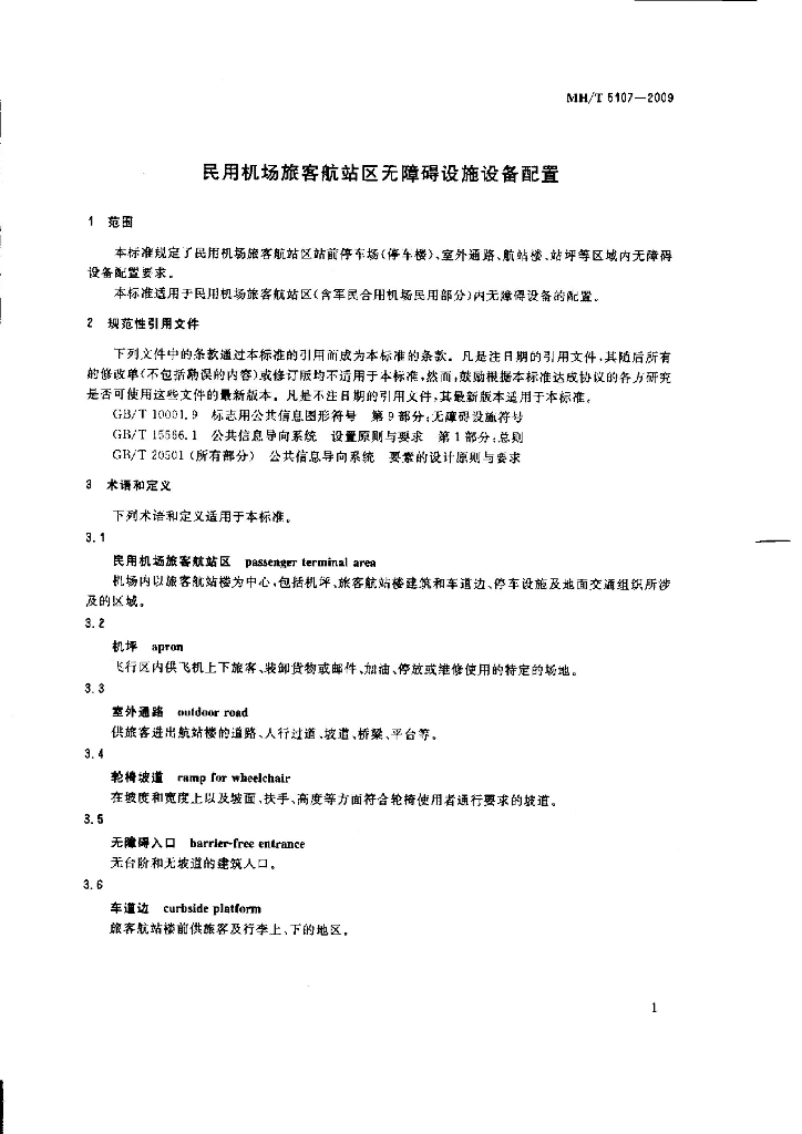 MH/T 5107-2009 民用机场旅客航站区无障碍设施设备配置