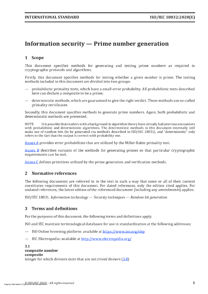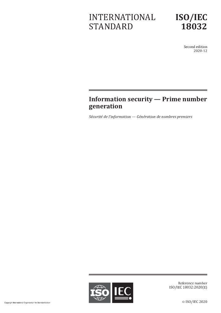 ISO/IEC 18032-2020 信息技术 安全技术 质数的产生
