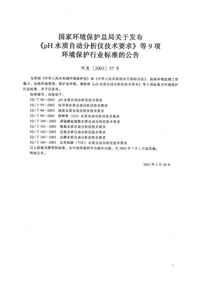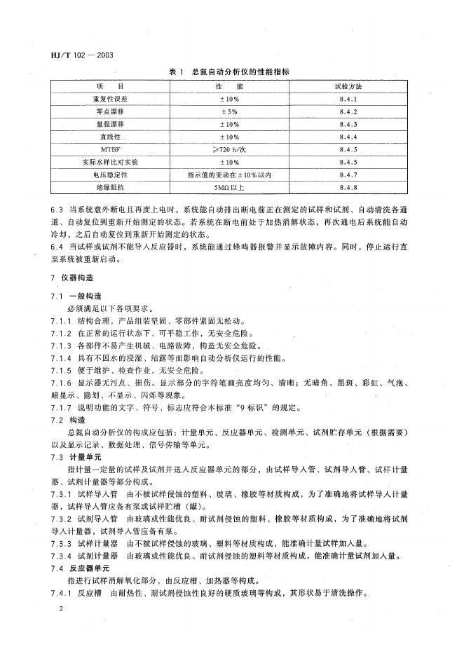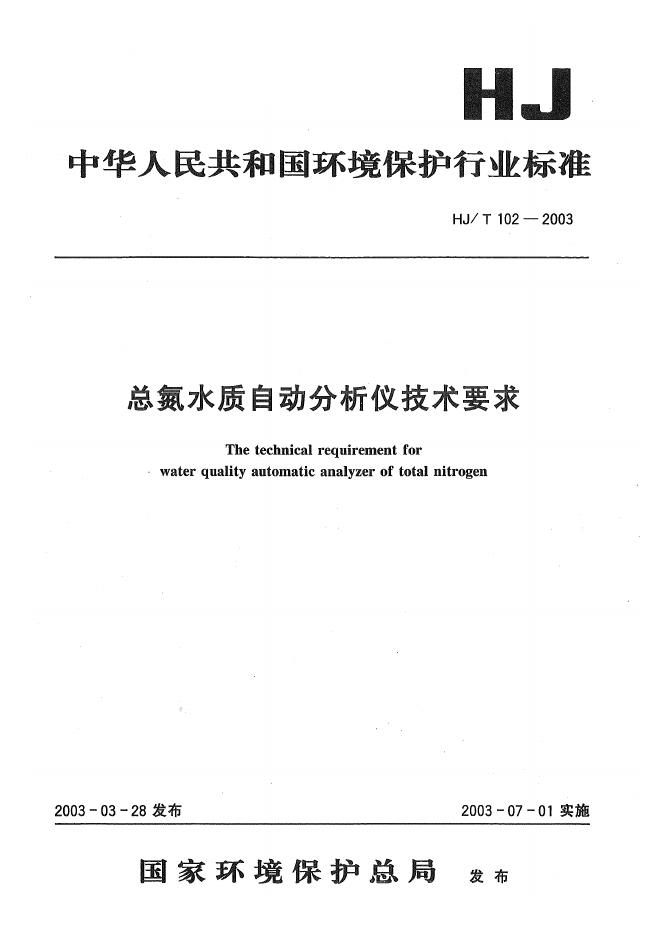 HJ/T 102-2003 总氮水质自动分析仪技术要求