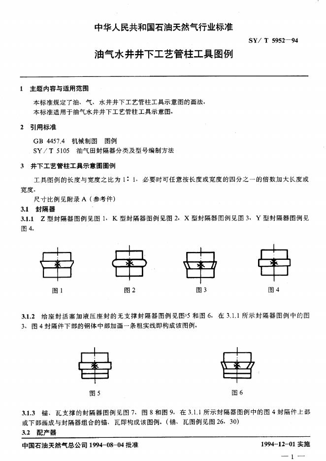 SY/T 5952-1994 油气水井井下工艺管柱工具图例